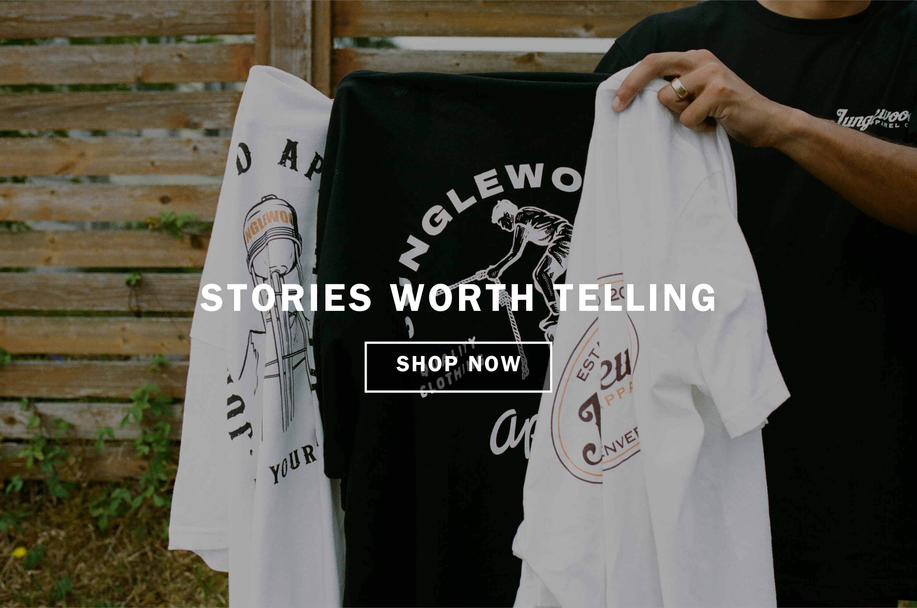 The designs at Junglewood Apparel were inspired by the crazy stories of growing up in a big family on an old Colorado property called "Junglewood." Long before TV & video games, kids were running around skinning knees & stealing telephone poles.